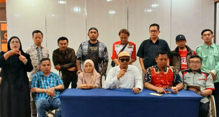Koalisi Disabilitas Jawa Timur menyatakan keterangan Persnya di Hotel Aria Gajayana, Malang,