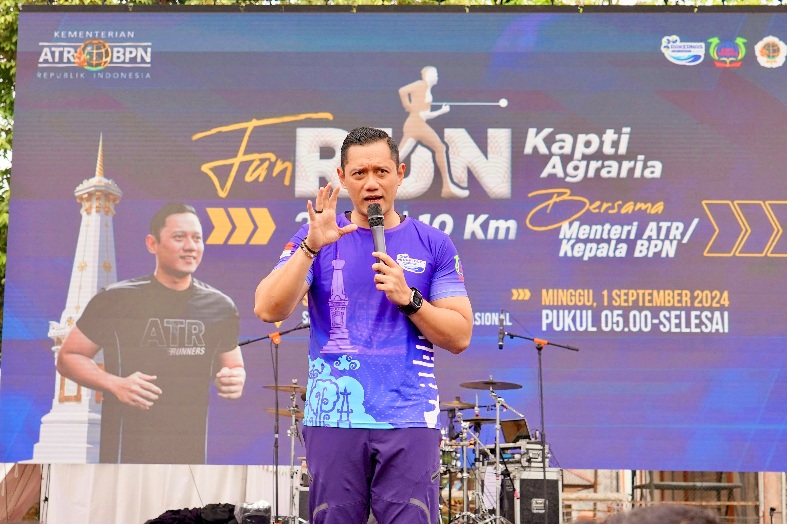 SLEMAN, radarpenanews.com – Menteri Agraria dan Tata Ruang/Kepala Badan Pertanahan Nasional (ATR/BPN), Agus Harimurti Yudhoyono (AHY) hadir dalam Fun Run Keluarga Alumni Pendidikan Tinggi Agraria (KAPTI-Agraria) yang berlangsung di Sekolah Tinggi Pertanahan Nasional (STPN) Yogyakarta, Kabupaten Sleman. Ia menyapa peserta sekaligus memberikan motivasi kepada taruna STPN yang mengikuti Fun Run.