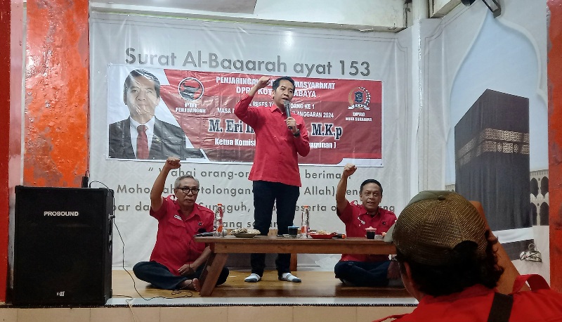 M.Eri Irawan, SE, M.K Ketua Komisi C (Bidang Pembangunan) Fraksi PDI Perjuangan DPRD Kota Surabaya saat melaksanakan Penjaringan Aspirasi Masyrakat DPRD Kota Surabaya Masa Reses Tahun Sidang Ke 1 Tahun Anggaran 2024, di Ayam Bakar Pak “D” Nginden, Jalan Nginden Semolo No 2, Nginden Jangkungan, Kecamatan Sukolilo, Surabaya, Minggu 3 November 2024. (Foto: bs)