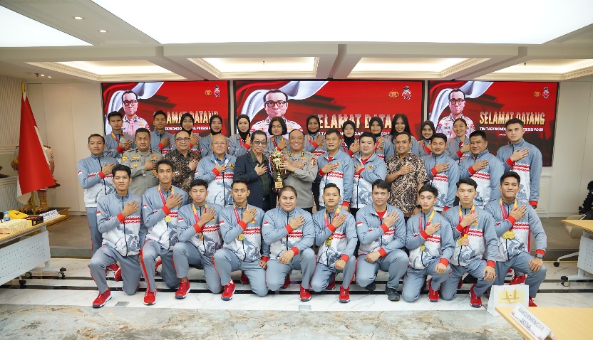 Komjen Pol Dedi memberi selamat atas capaian tim Taekwondo Garbha Presisi yang berhasil menjadi juara umum ke 2 di kejuaraan yang diikuti Lembaga kepolisian dari 19 negara.