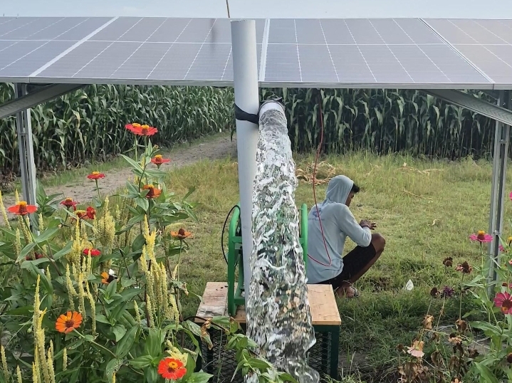 “Pompa tenaga surya. Ini bisa menjadi peluang bisnis yang baik, terutama dalam konteks meningkatkan penggunaan energi terbarukan dan mendukung pertanian modern yang berkelanjutan, dan merupakan salah satu produk Green energy yang diperlukan masyarakat khusus nya dan juga bisa sebagai pendukung Program pemerintah yaitu program Ketahanan Pangan,” ujar Raden Aji.