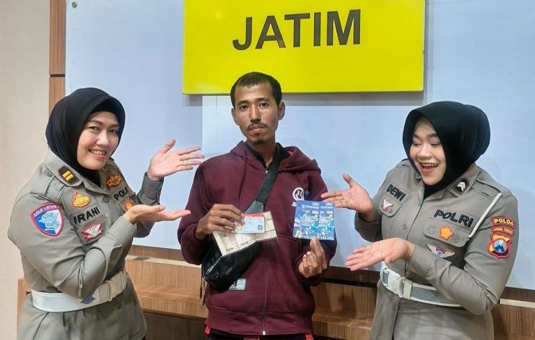 “Alhamdulillah saya dapat rezeki, terima kasih untuk jajaran Polantas Polda Jatim,” ucap Andio.