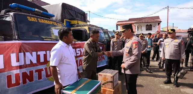 Sebagai bentuk kehadiran negara, Kapolri juga menyerahkan secara simbolik delapan truk bantuan ‘Polri untuk Masyarakat’ yang berisi bahan makanan, pakaian dan kebutuhan sehari-hari kepada Bupati Tapanuli Tengah, Masinton Pasaribu. Bantuan tersebut langsung didistribusikan ke posko pengungsian warga terdampak banjir di GOR Pandan, Tapanuli Tengah.