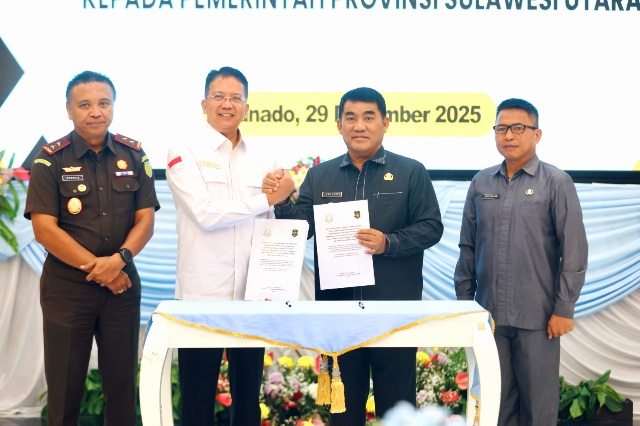 JAKARTA, radarpenanews.com – Kepala Badan Pemulihan Aset Kejaksaan RI, Dr. Kuntadi melaksanakan serah terima simbolis pemindah tanganan secara hibah Barang Rampasan Negara kepada Gubernur Provinsi Sulawesi Utara. Simbolis hibah yang dilaksanakan pada hari Senin(29/12/2025) bertempat di Gedung Wisma Negara Provinsi Sulawesi Utara berupa 1 unit Kapal FB.ST Michael beserta alat kelengkapannya atas nama Terpidana Carmelo L. Dela Pena dan 1 unit Kapal FB. ST. Bobby-01 beserta alat kelengkapannya atas nama Terpidana Sanny Dela Pena.