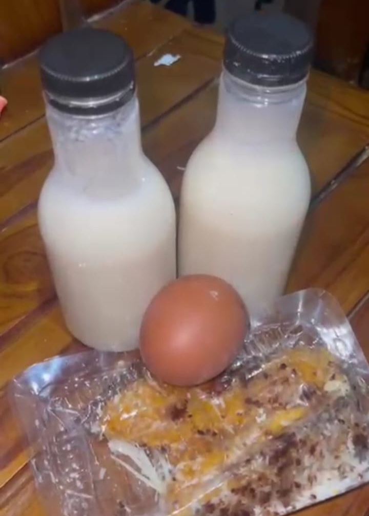 Paket MBG yang berisi pisang cokelat (piscok), telur rebus, dan susu kedelai yang diduga tak layak konsumsi (ist)
