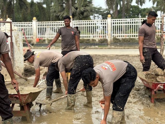 ACEH TAMIANG, radarpenanews.com – Personel Pasukan Brimob I Korbrimob Polri yang melaksanakan